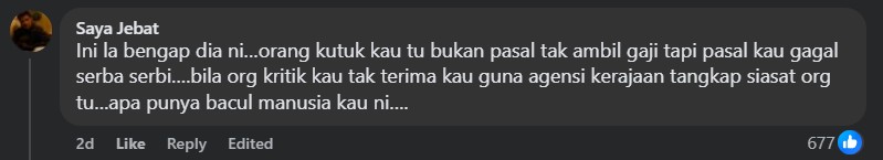 “People are condemning you not because you didn’t get paid but because you failed in every way,” snubbed one commenter in the PKR Facebook post.
