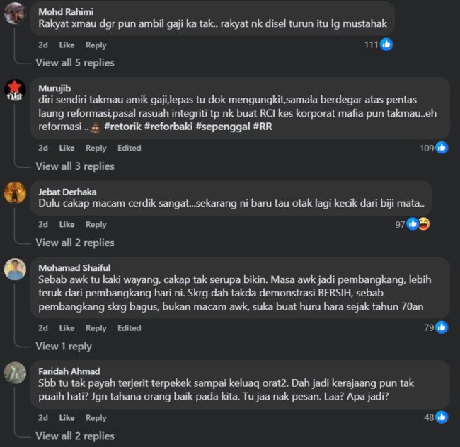 Other criticism levelled at PMX include the fact that he voluntarily forgoes his rights not to accept a salary yet he is harping on not getting appreciated or that it would be better to just draw a salary to better motivate him to focus on ridding the various weaknesses or defects in his Madani administration.