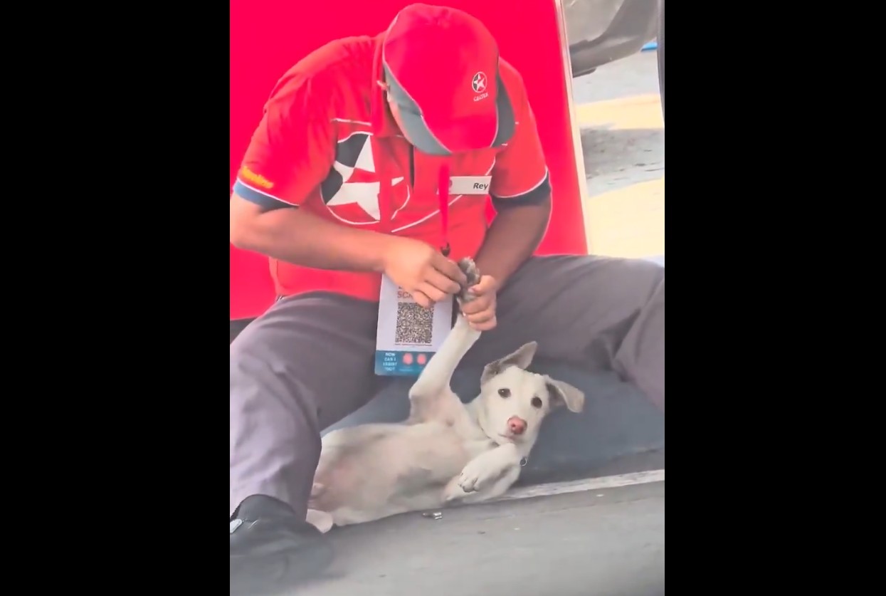 In a video post by netizen @1hakankapucu, a staff from Caltex could be seen removing a splinter from the paw of a stray dog.