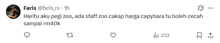 According to netizen @fxris_rs, a staff from the zoo informed him that a capybara could fetch a price of about RM40,000. Now that is a lot of money.
