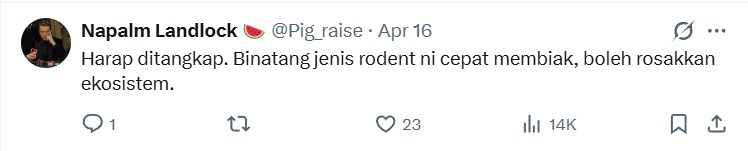 Even more amusing was the comment from @Pig_raise, asking that the capybara be caught as it breeds quickly and is capable of destroying the ecosystem.