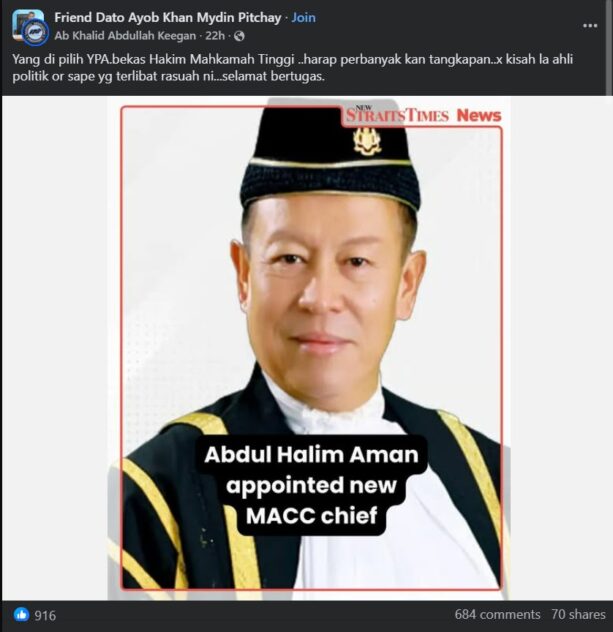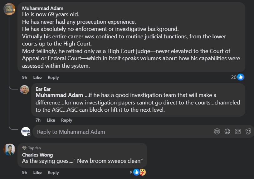 “He’s now 69 years old. He has never had any prosecution experience. He has absolutely no enforcement or investigative background,” doubted a commenter to a NST Online’s infographic of Halim.