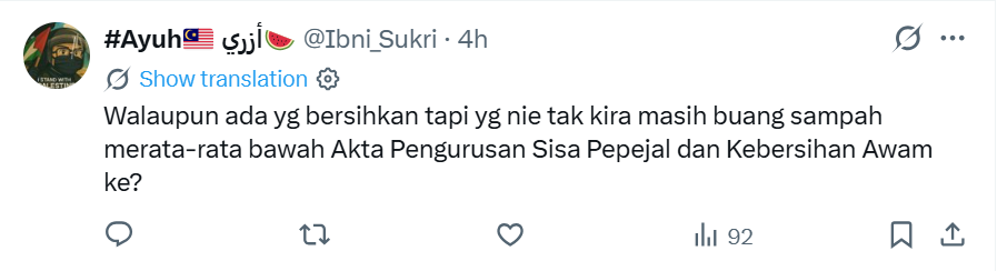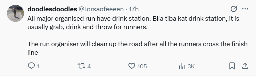 So what can we tell about a post on X by netizen @localrkyt which showed a road littered with paper cups.