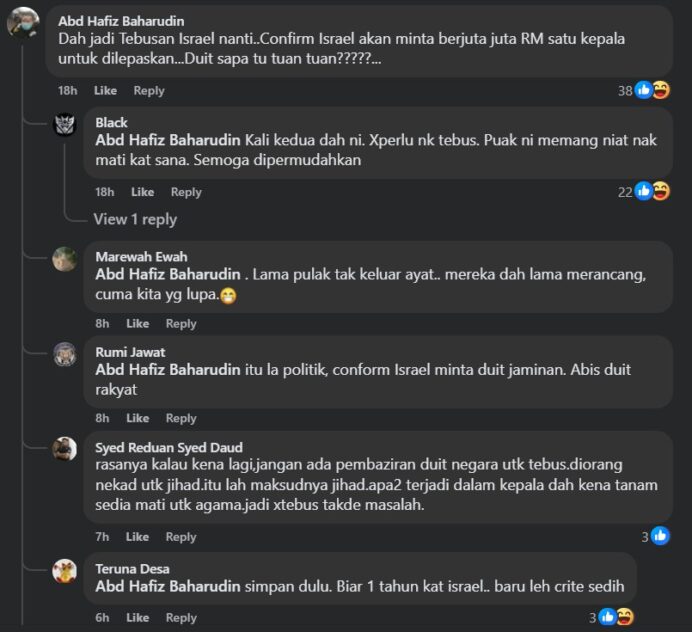 “Supposedly they end up being the Israel’s hostages, who has to fork out the ransom money if the latter demands millions of RM per head for their release?” jibed one safety & health officer from Melaka.