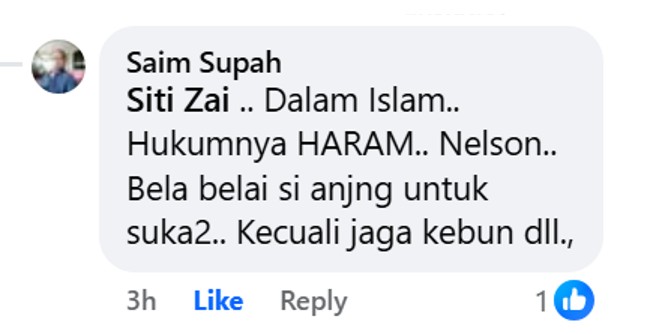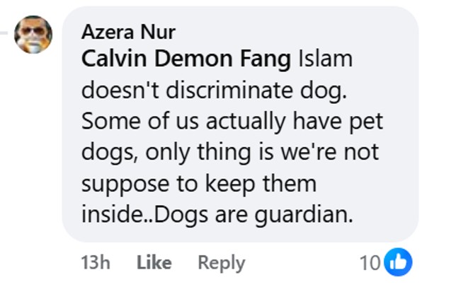Many also noted that the animals were indeed lucky to have a carer such as Shikin. It was obvious from the video that the furry friend was extremely comfortable in her embrace, observed a Muslim commenter, only to be chastised by her Muslim brethren that “touching dogs are haram, stupid!”