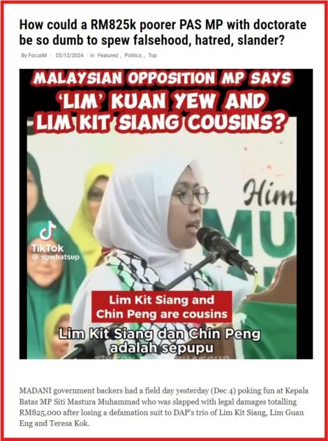 Despite the courts having found Siti Mastura liable for defaming DAP leaders with her unfounded claims, PAS seems reluctant or unable to free itself from this brand of politics where DAP is conveniently name-dropped for alarmist purposes as highlighted by its Sungai Buloh PAS Youth wing’s FB post.