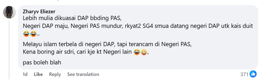 In fact, the latter group has been subject to water woes as well as having to migrate to other states to find employment. “Better to be ruled by DAP than PAS” was the succinct observation of this commenter before adding that “PAS can get lost” for good measure.