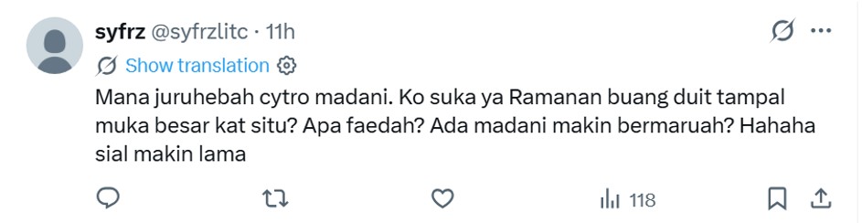What exactly was the benefit of pasting Ramanan’s face in extra-large dimensions, wondered one perplexed observer. Where were the pro-Madani cyber troopers to defend this waste of money, he further queried.