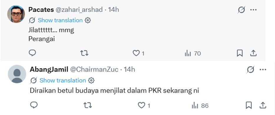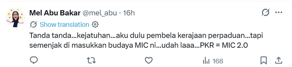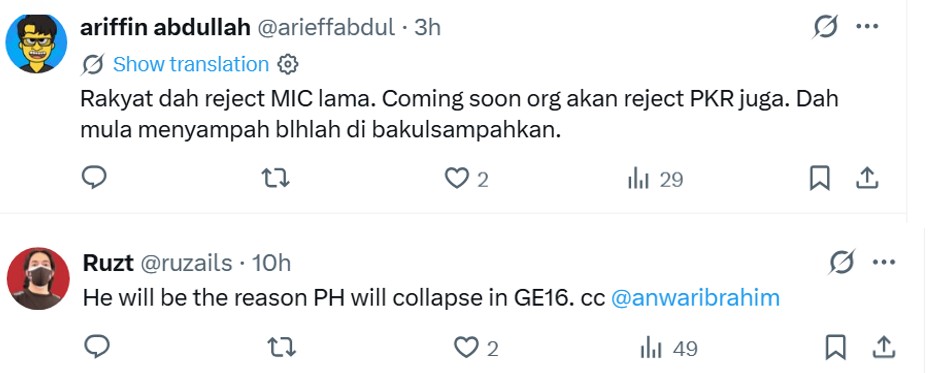 The disgusted reaction of the poster spoke volumes as he proclaimed that “MIC habits and attitudes should be kept far away from PKR”, alluding to the Sungai Buloh MP’s past connections with the Barisan Nasional (BN) component party.
