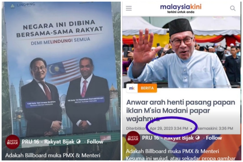 Editor’s Note: PMX explicitly ordered government agencies and departments to stop putting up billboards featuring his image and the “Malaysia Madani” slogan, citing them as a waste of funds in April 2023.