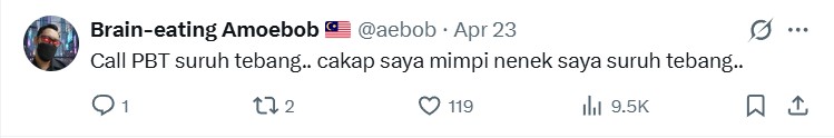 Then there was netizen @aebob calling the authorities to chop it down. He even said to put the blame on him, saying that his grandmother told him to chop down the tree in a dream.