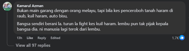 However, the so-called quest to defend the suspect’s dignity was seized upon by the rightist fraternity by portraying how the authorities “only dare to be garang (act harshly) against the Malays yet are auto mute when it comes to the illegal land encroachment case in Raub or kuil haram (illegal temples)”.