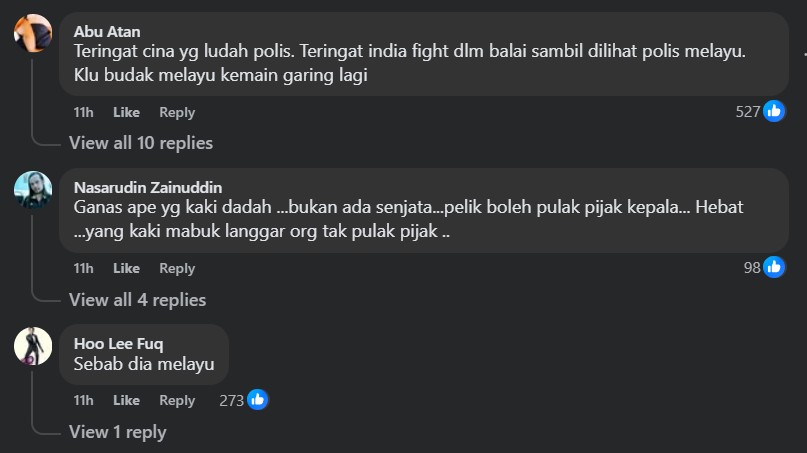 While many commenters agreed that the cops “shouldn’t have abused their authorities by resorting to violence”, such double standards narrative has seemingly become prevalent in recent times as evident from this FB post by Kulim Media TV.