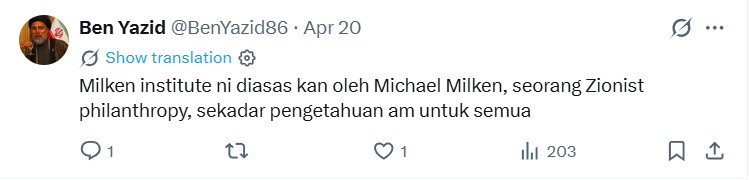 Another netizen pointed out that the Milken’s Institute was founded by a Zionist philanthropist by the name of Michael Milken.