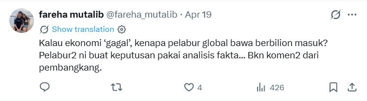 Defending Zafrul was @fareha_mutalib who said these investors make decisions based on facts, not comments from the opposition.