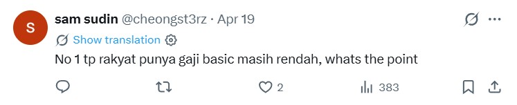 “But the people’s basic salary is still low. What is the point?” said @cheongst3rz.