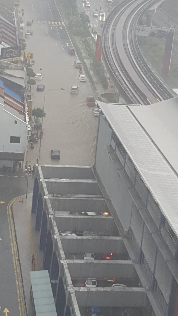 Terkini. Jalan sekitar LRT Bangsar banjir. Beberapa kereta tenggelam.