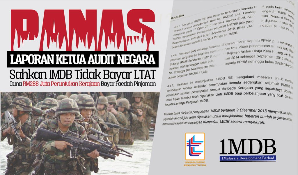 Laporan Ketua Audit Negara yang saya tunjukkan pada hari ini jelas membuktikan bahawa keterlibatan LTAT di dalam projek 1MDB dan masalah kewangan 1MDB telah membawa kesan kepada kedudukan LTAT.