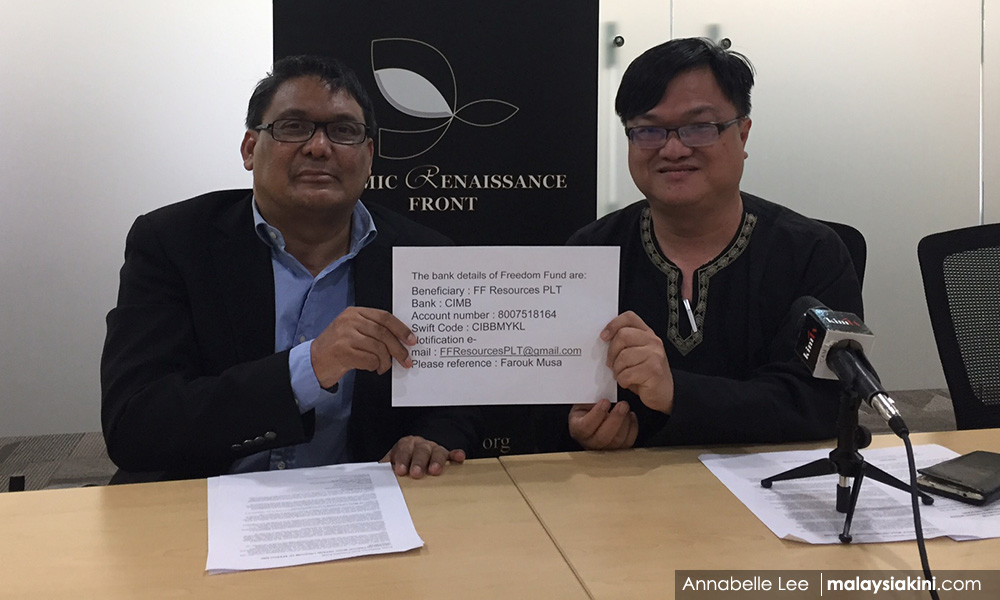 Donations can be made to FF Resources PLT through bank transfer to account number 8007 5181 64 (CIMB Bank). The swift code is CIBBMYKL and “Farouk Musa” should be used as the reference or description.- Mkini