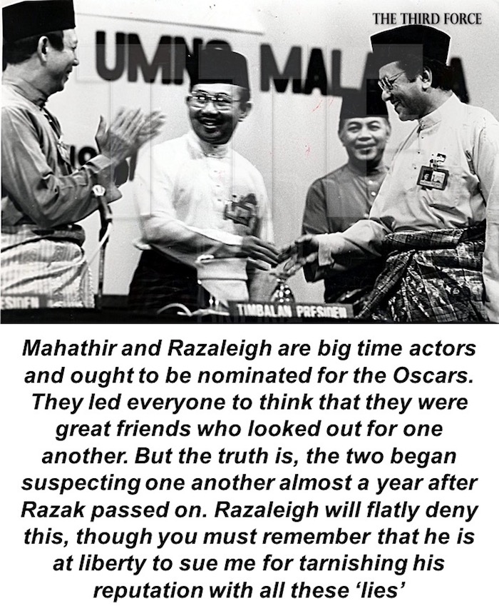 As a matter of fact, the third Malaysian premier even preferred Razaleigh over Mahathir as the new Deputy Prime Minister. But the Kelantan Prince convinced Hussein to consider Mahathir for the post, citing some“unfinished business” he had in Bank Bumiputra Malaysia Berhad (BBMB) that required “serious attention.” Contrary to popular belief (which Razaleigh himself propagated), his decision not to become deputy premier had everything to do with a plan Mahathir had quietly hatched together with Hamzah and Jaffar which was whispered to him by someone from BBMB.
