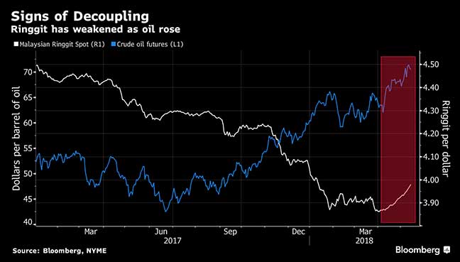 The fact that the ringgit, which often moves in tandem with oil prices, decoupled from crude in the weeks preceding the election is also helping to prevent a more severe selloff, said Khoon Goh, head of Asia research at Australia & New Zealand Banking Group Ltd in Singapore.