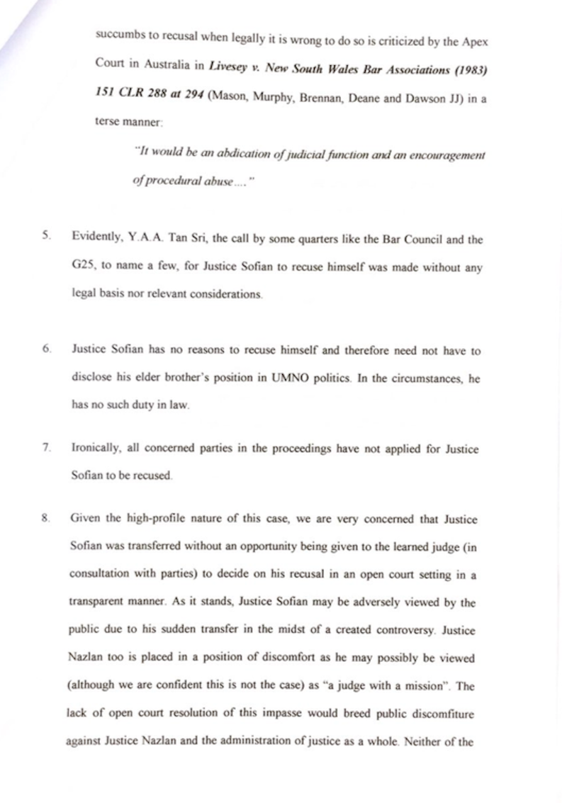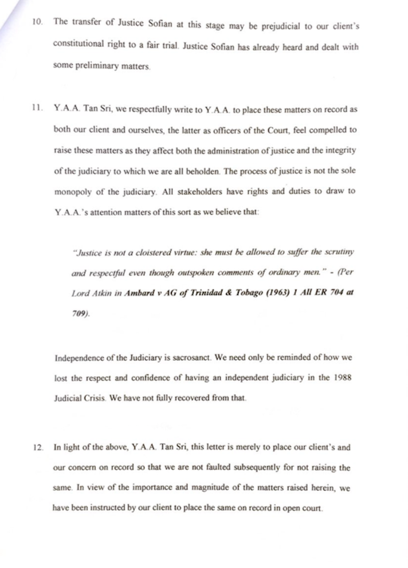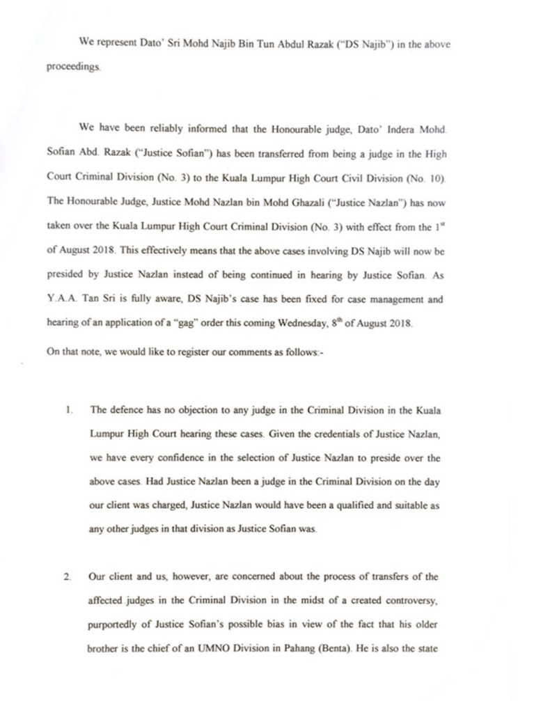 Justice Sofian’s transfer may be prejudicial to Najib’s constitutional right [Doc included]