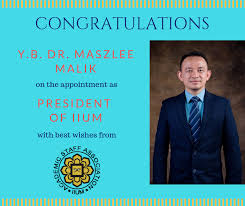 Talk is Maszleee was appointed president upon Tun Dr Mahathir's request, and consent of the DYMM Sultan Pahang who is the "constitutional head" of the IIUM.