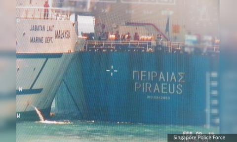 Singapore's Maritime and Port Authority (MPA) said the MV Polaris had collided with a Greek-registered bulk carrier, Piraeus, at 2.28pm today.