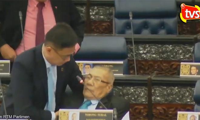 Fellow parliamentarian Wong Chen (Harapan-Subang), who was sitting next to him, grabbed onto him before he fell onto the ground, as Syed Ibrahim Syed Noh (Harapan-Ledang) rushed from the row behind him to help.