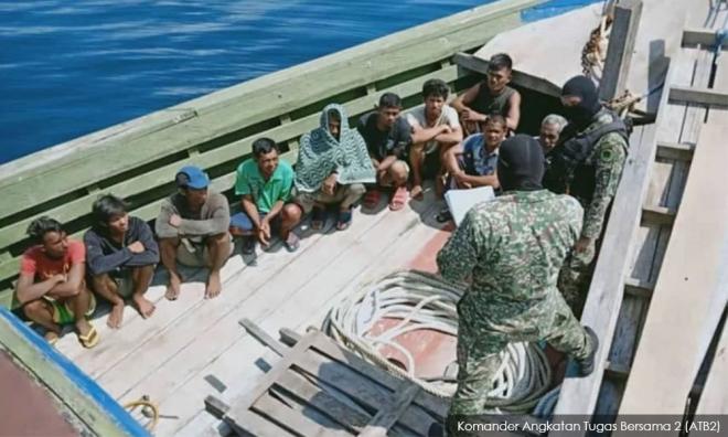 ATB 2 Commander Brigadier-General Johari Mohd Jaafar said the men, aged between 20 and 45 and all of whom carried no identification papers, were detained at 10.43am yesterday after the task force detected a Kumpit boat speeding from Tawi-Tawi islands towards Tawau.