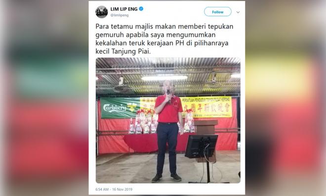At a community event last night, Kepong MP Lim Lip Eng had to announce the Tanjung Piai by-election results to the audience, many of which were his constituents.