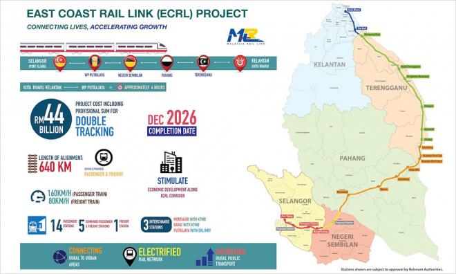 The 640km East Coast Rail Link (ECRL) linking Port Klang to Kota Bharu is among the rail projects that received the government’s green light after it was suspended for re-negotiation.