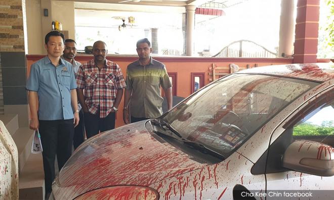 The red paint was filled in three packets and then hurled onto the property in Nilai at about 12.20am, according to a report by Chinese newspaper Oriental Daily.