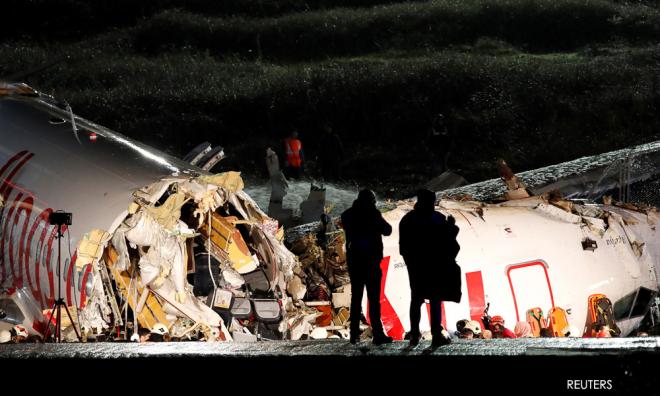 The plane split into three pieces after what Transport Minister Cahit Turhan called a rough landing, adding that there were no fatalities. He said flights waiting to land in Sabiha Gokcen were diverted to Istanbul Airport.