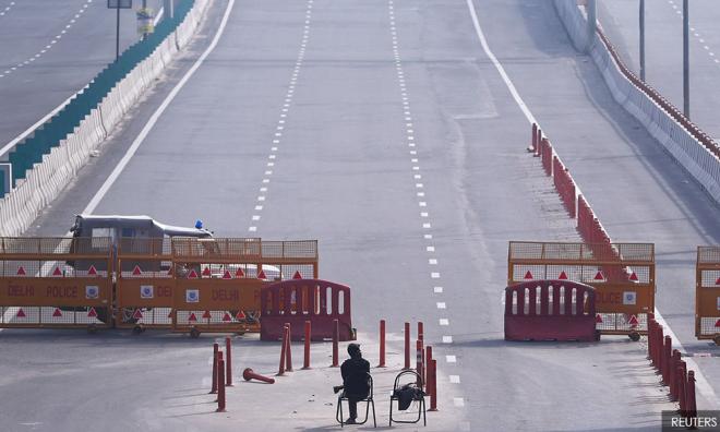As India's various states shut their borders, long queues of trucks carrying milk, fruits and vegetables snaked down highways.