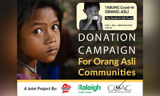 "The funds raised will be channeled to a local coordinator, who is from the Orang Asli community and is known to COAC and its network members.