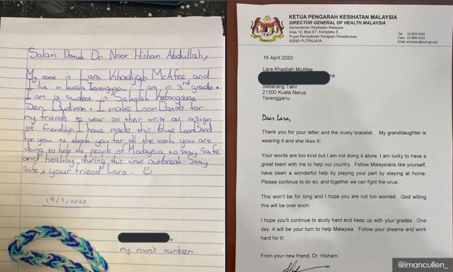 When contacted, Lara's mother Mutiara Jusuf Mcafee said her family, especially Lara, are overwhelmed and excited that the letter reached Noor Hisham.