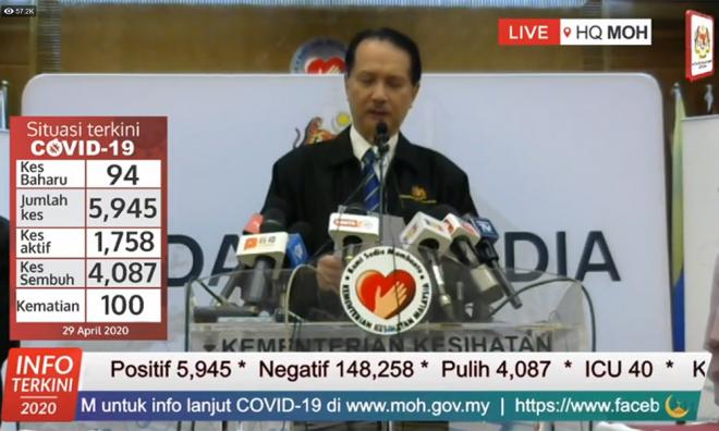 This brings the total number of cases to 5,945, he told the ministry's daily briefing in Putrajaya today.