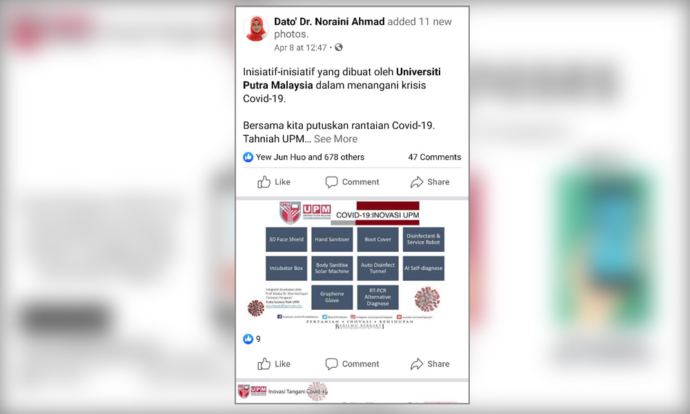 UPM deputy vice-chancellor Zulkifli Idrus said information about the application was initially shared in an April 7 infographic by UPM's Putra Science Park that highlighted 10 innovations to fight the war against Covid-19.
