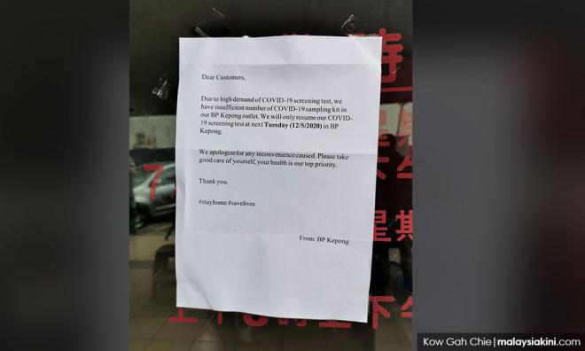 The Klang outlet also put up a notice informing the public about the shortage of testing kits.