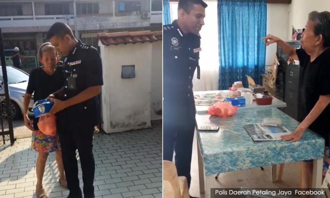 A clip shared on the Petaling Jaya district police Facebook page today shows the lady greeting Nik Ezanee at her house. He's seen holding a plastic bag filled with pau.