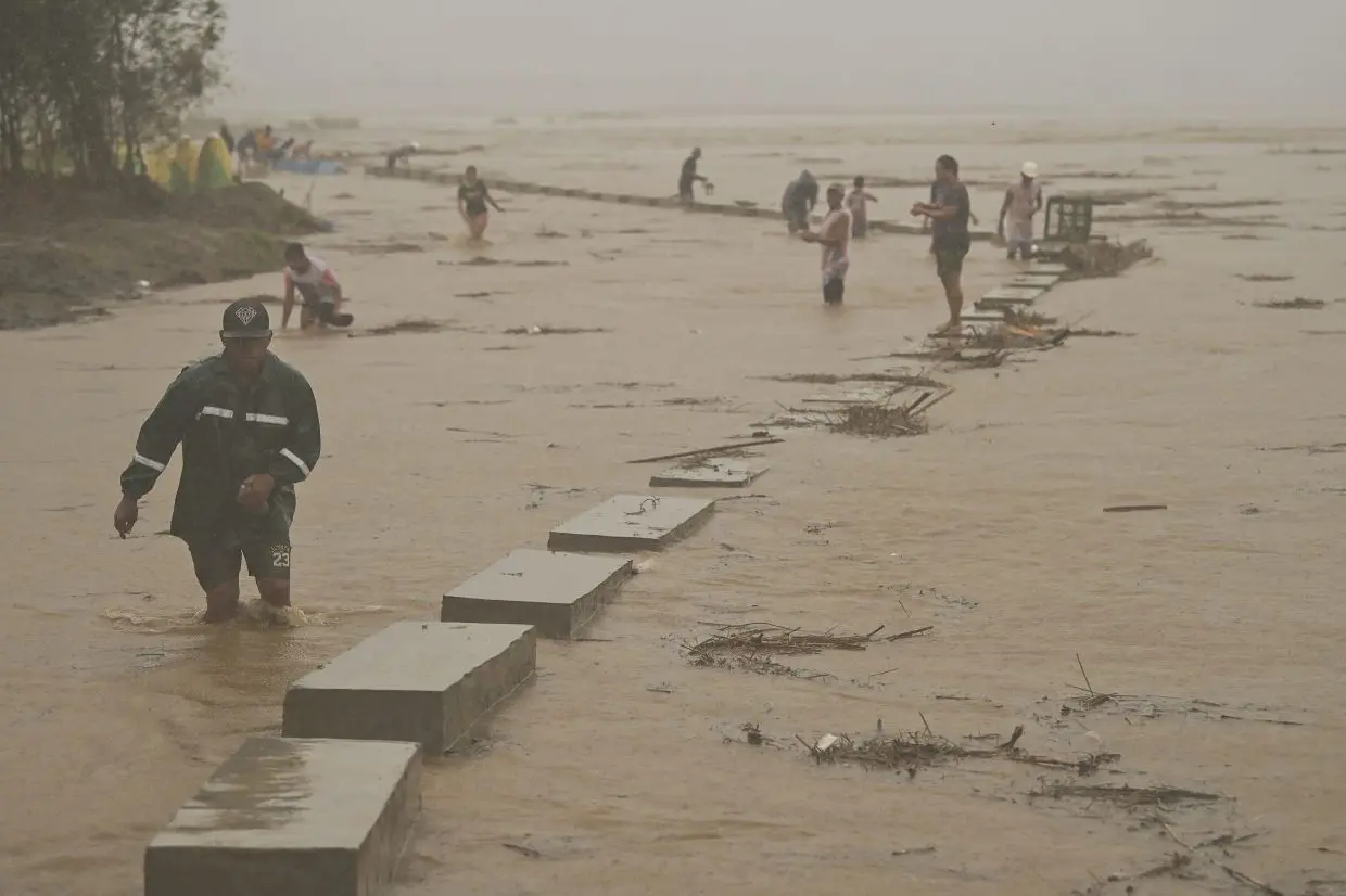 Residents move to safer grounds as they evacuate from their homes along a swollen river caused by heavy rains from Typhoon Toraji in Ilagan City, Isabela province, northern Philippines on Monday, Nov. 11, 2024. - AP