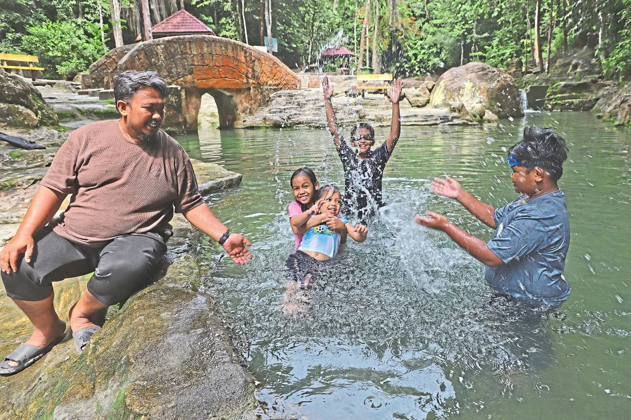 Splashing good time: Mohd Razif from Penaga enjoying the cool waters with his children at Teluk Bahang Recreational Park, commonly known as Taman Rimba in Teluk Bahang, Penang. — LIM BENG TATT/The Star