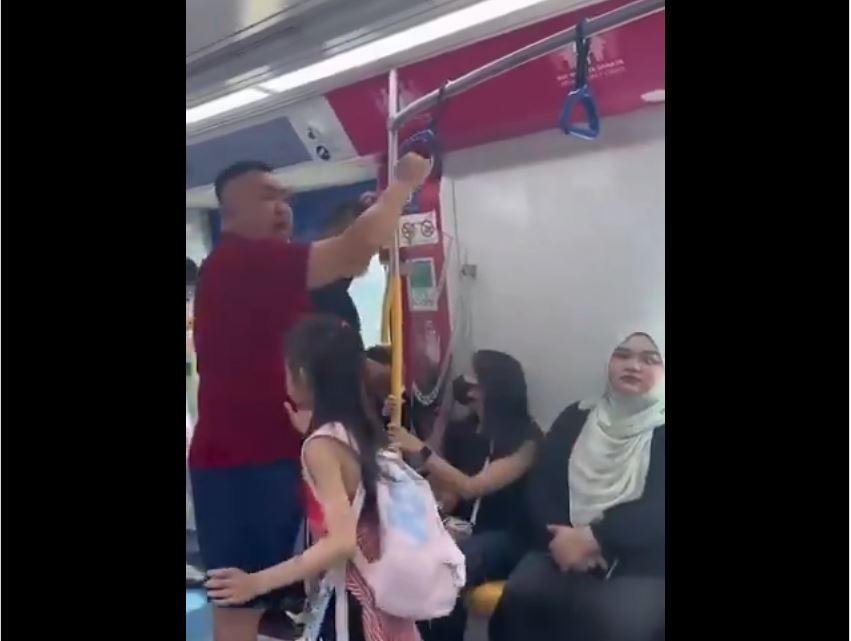 And his excuse? Apparently his daughter was playing around the carriage and he needed to monitor her. The man would not budge even though a security personnel was called in to explain the matter.