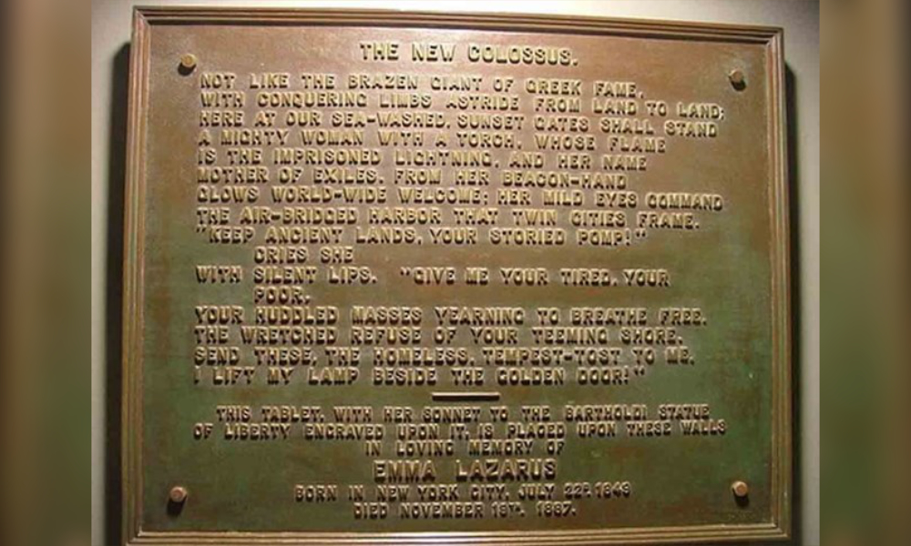 In 1883, a Jewish poet wrote the following about the Statue of Liberty, which was engraved on a bronze plaque and placed on its pedestal 20 years later. It says: