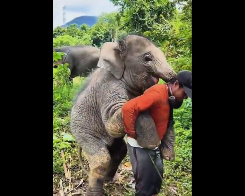 Recently, a video went viral on X, showing how an elephant calf was able to cuddle up and play with its caretaker.