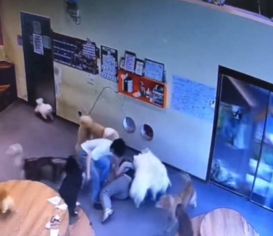 In the video, a caretaker could be seen tripping over one of her four legged friends. Immediately, all the other dogs in the video came over to assist her, their concern so clearly captured on tape.