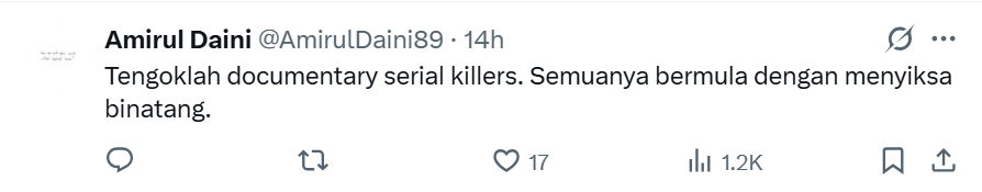 Then there was @AmirulDaini89 suggesting that this was among the traits of a serial killer.