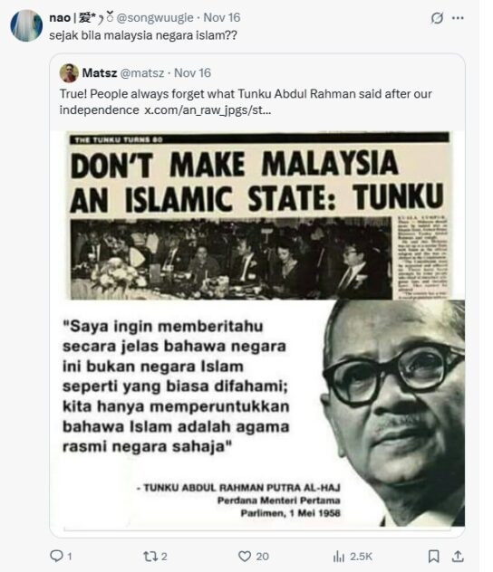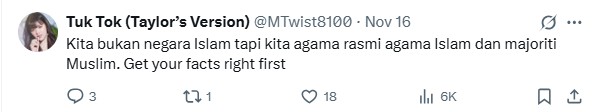 The naivety of claiming that “Malaysia is a Muslim county” inevitably triggered trading barbs, particularly from constitutionally enlightened netizens with even Muslims themselves stepped in to be counted.