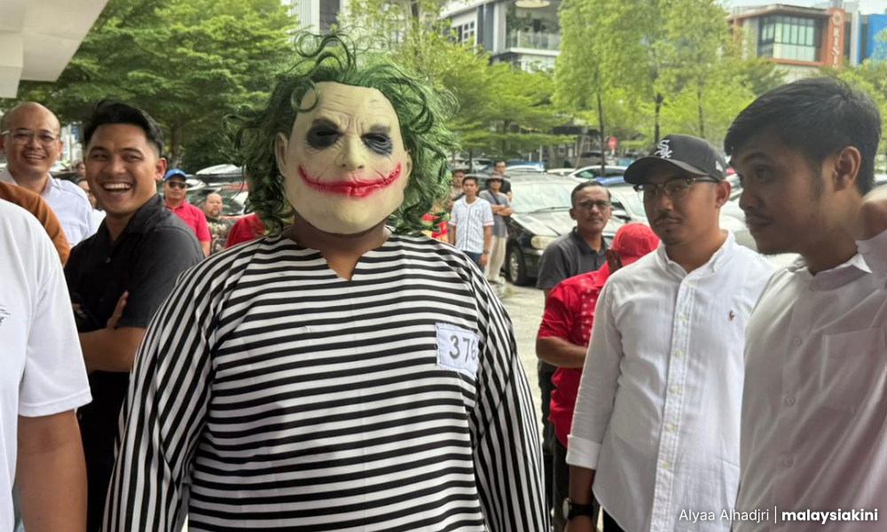 There was also a man dressed in a black-and-white prisoner’s outfit, and a Joker mask, said to represent Yong.